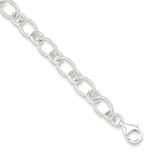 Bracelet #3 | 7.0mm Wide Alternating Textured Links | Length 7" | Sterling Silver